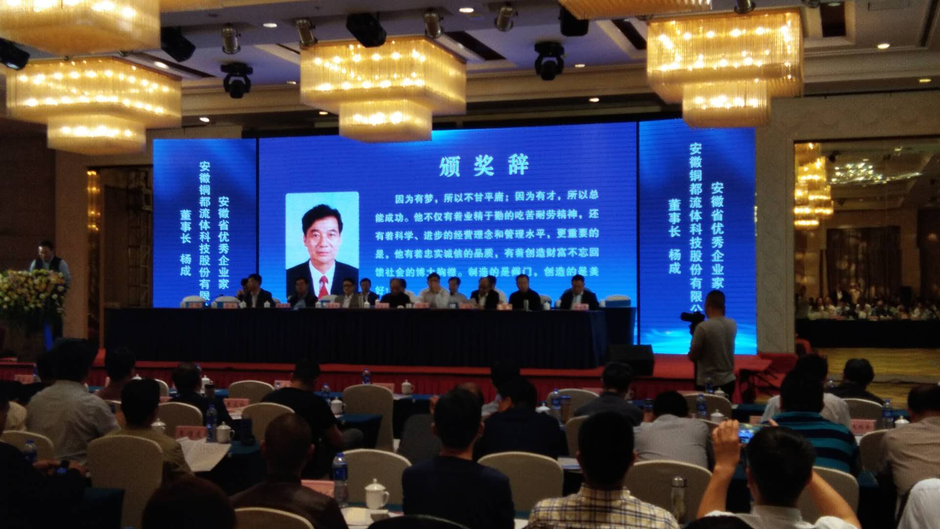 公司董事長楊成作為銅陵市代表,榮獲"安徽省優秀企業家"榮譽稱號,并出席了安徽省優秀企業家表彰會暨安徽省企業誠信建設大會頒獎儀式。
