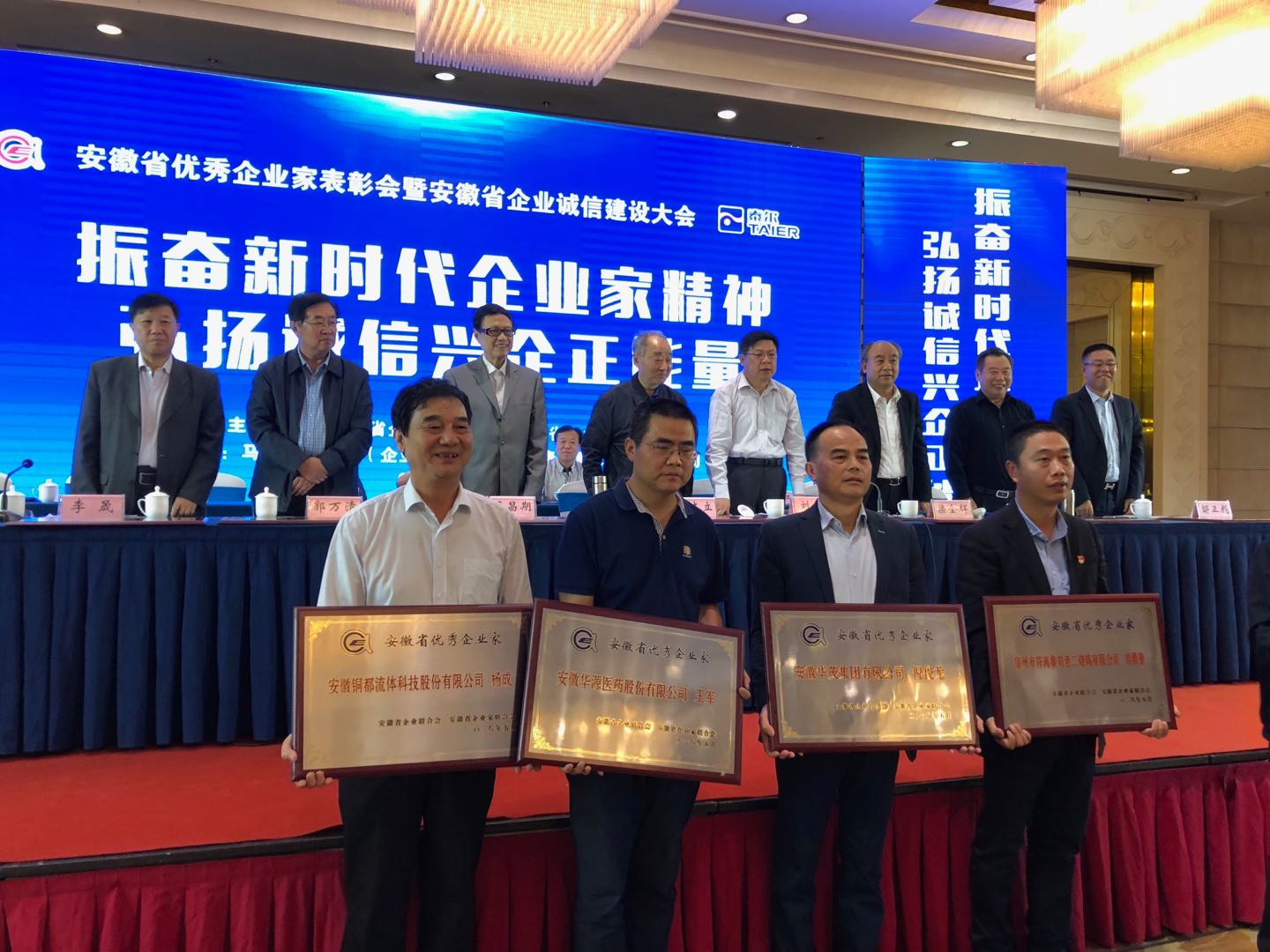 振奮新時代企業家精神,弘揚誠信興企正能量。公司董事長楊成榮獲"安徽省優秀企業家"榮譽稱號。