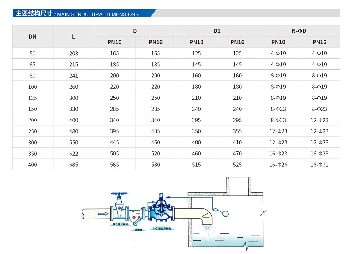 該閥門能有效地控制水塔或水箱液面,適時(shí)切斷或打開閥芯輸入水充或阻止水流外泄。液位控制準(zhǔn),水位不受壓力波動干擾,開團(tuán)緊密不漏水,浮球靈活,維護(hù)保養(yǎng)簡單(控制球閥可與主閥分離安裝),適用于工礦,企業(yè),高層建筑中的水箱,水池,水塔的自動供水系統(tǒng)。