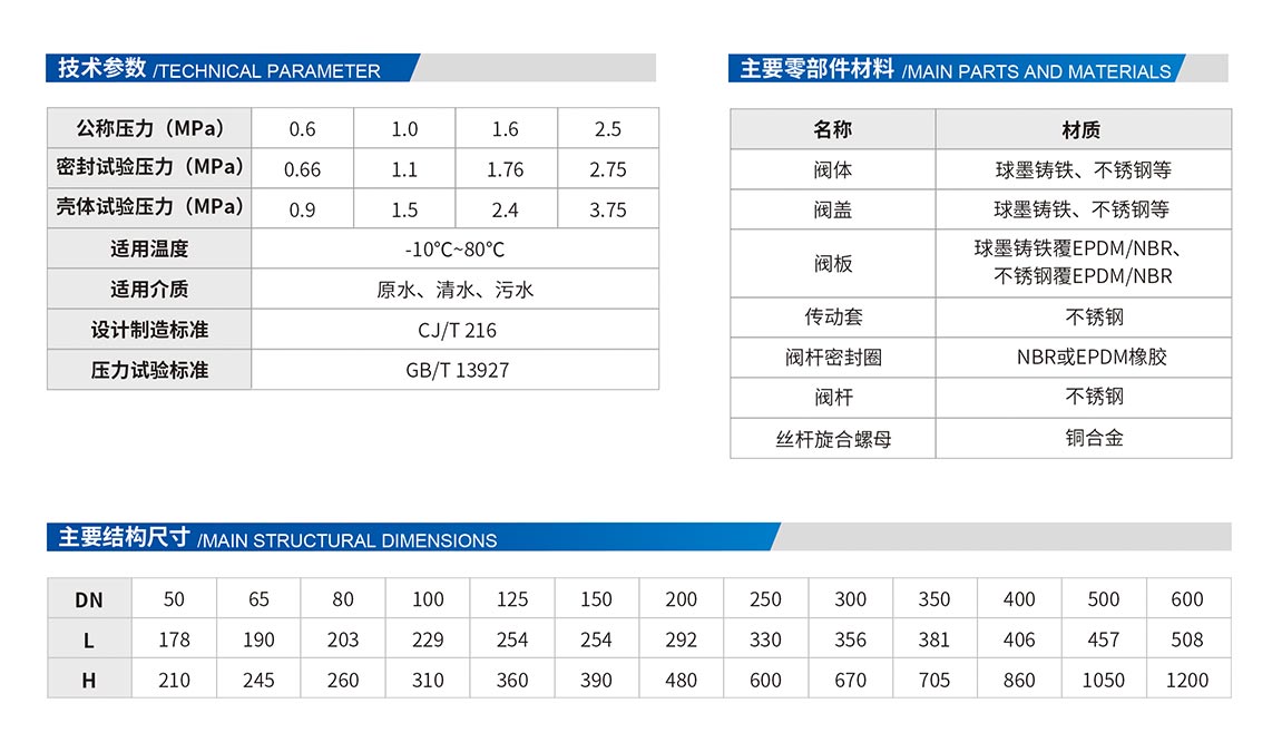 閥門不會生銹,與介質接觸的橡膠及環氧樹脂涂層均不會對水質構成影響。