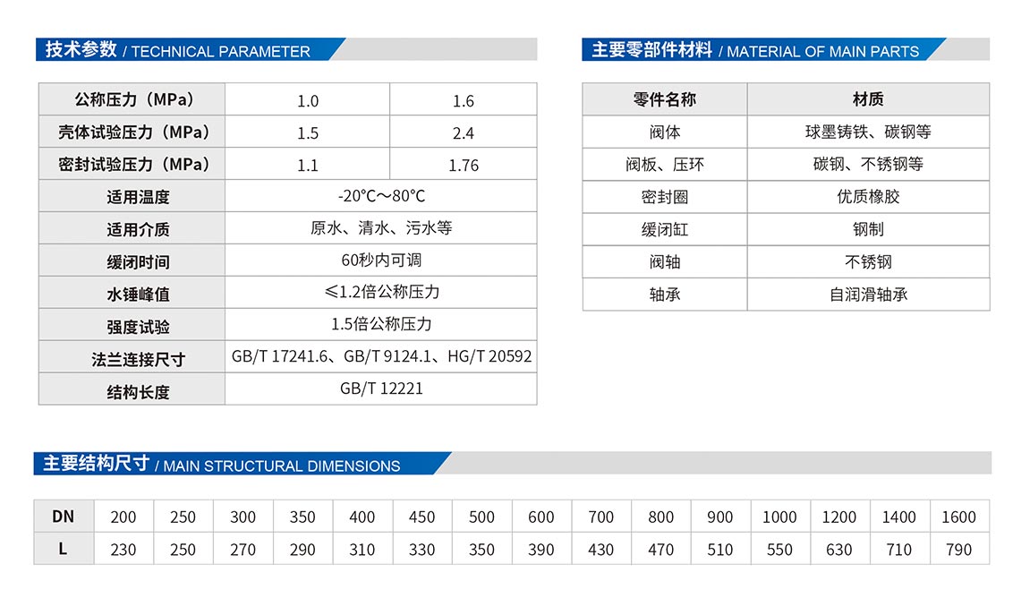 蝶形緩閉止回閥主要用于凈水、原水、污水、海水等介質(zhì)的供、排水管道上,安裝在水泵出口處,用以截斷介質(zhì)的回流,消除水錘,保護(hù)管道、水泵的安全運行。其主要特點:體形小、重量輕、結(jié)構(gòu)長度只有旋啟式止回閥的三分之一左右。帶外置阻尼油缸,緩閉性能優(yōu)良,不受管道中介質(zhì)的影響,閥瓣先速關(guān)后緩閉,可防止破環(huán)性水錘。橡膠軟密封,結(jié)構(gòu)密封性能好,耐磨損,使用壽命長。橡膠緩沖,運行平穩(wěn),無震動及噪音,比老式止回閥流阻小,有明顯的節(jié)能效果。